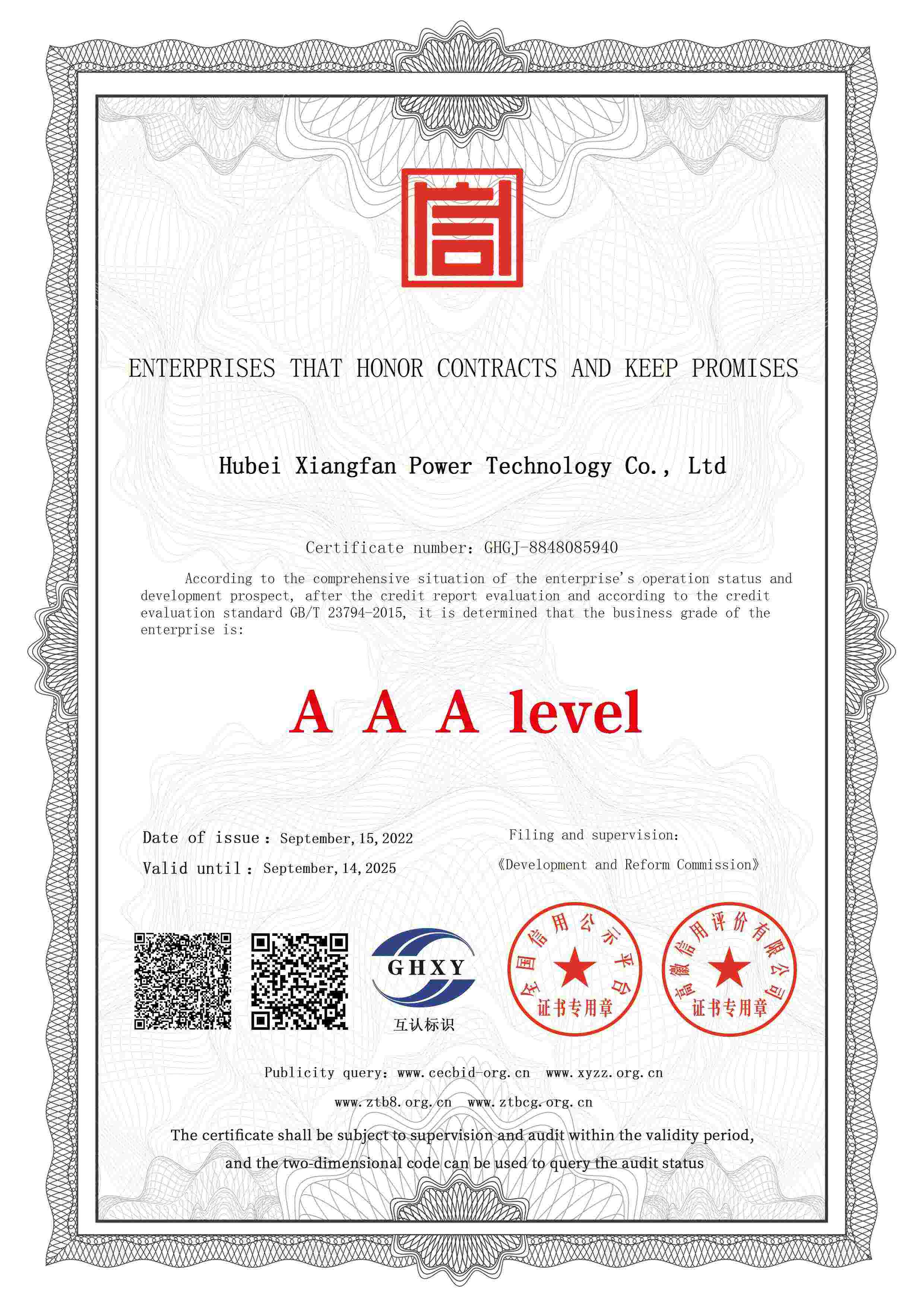 • 重质量守信用企业-英文版