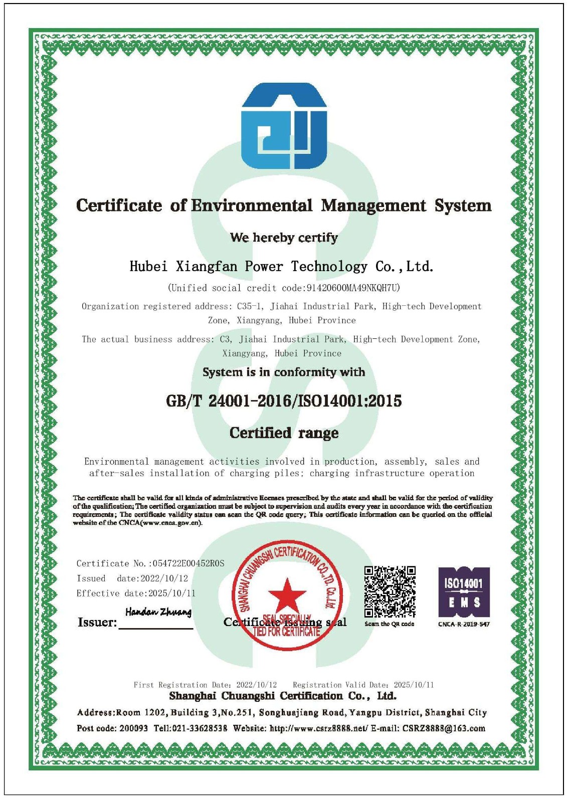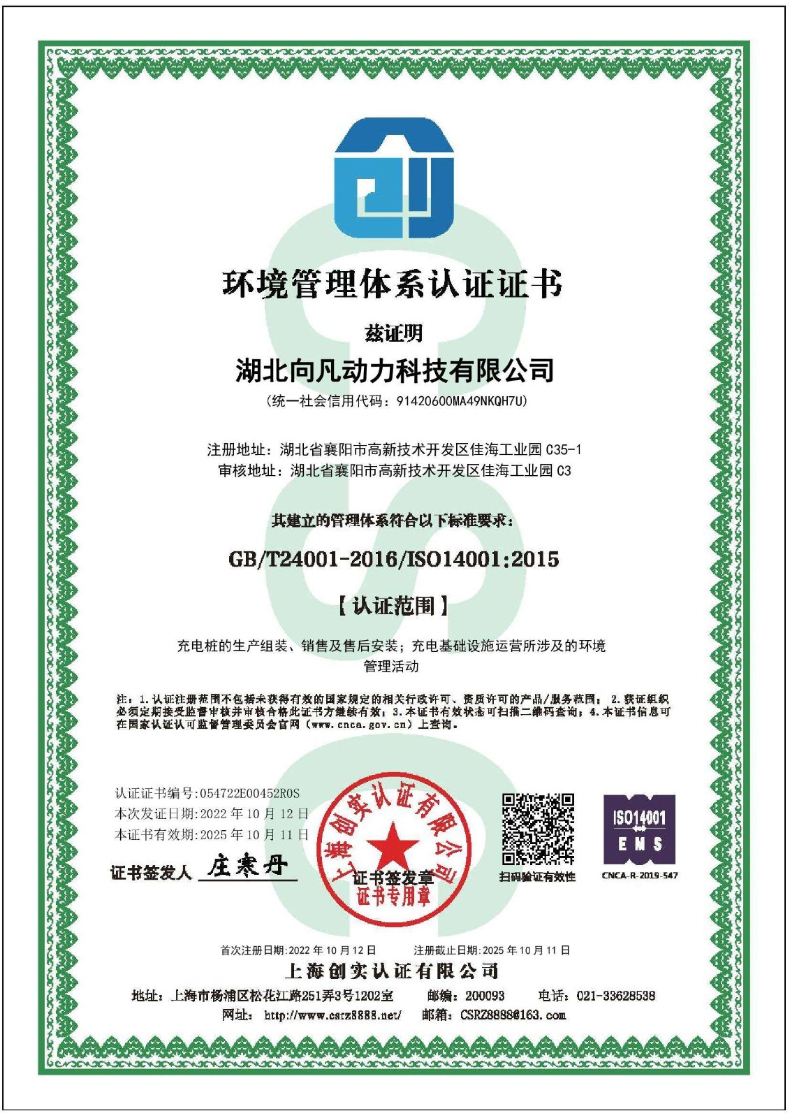 • 环境管理认证证书