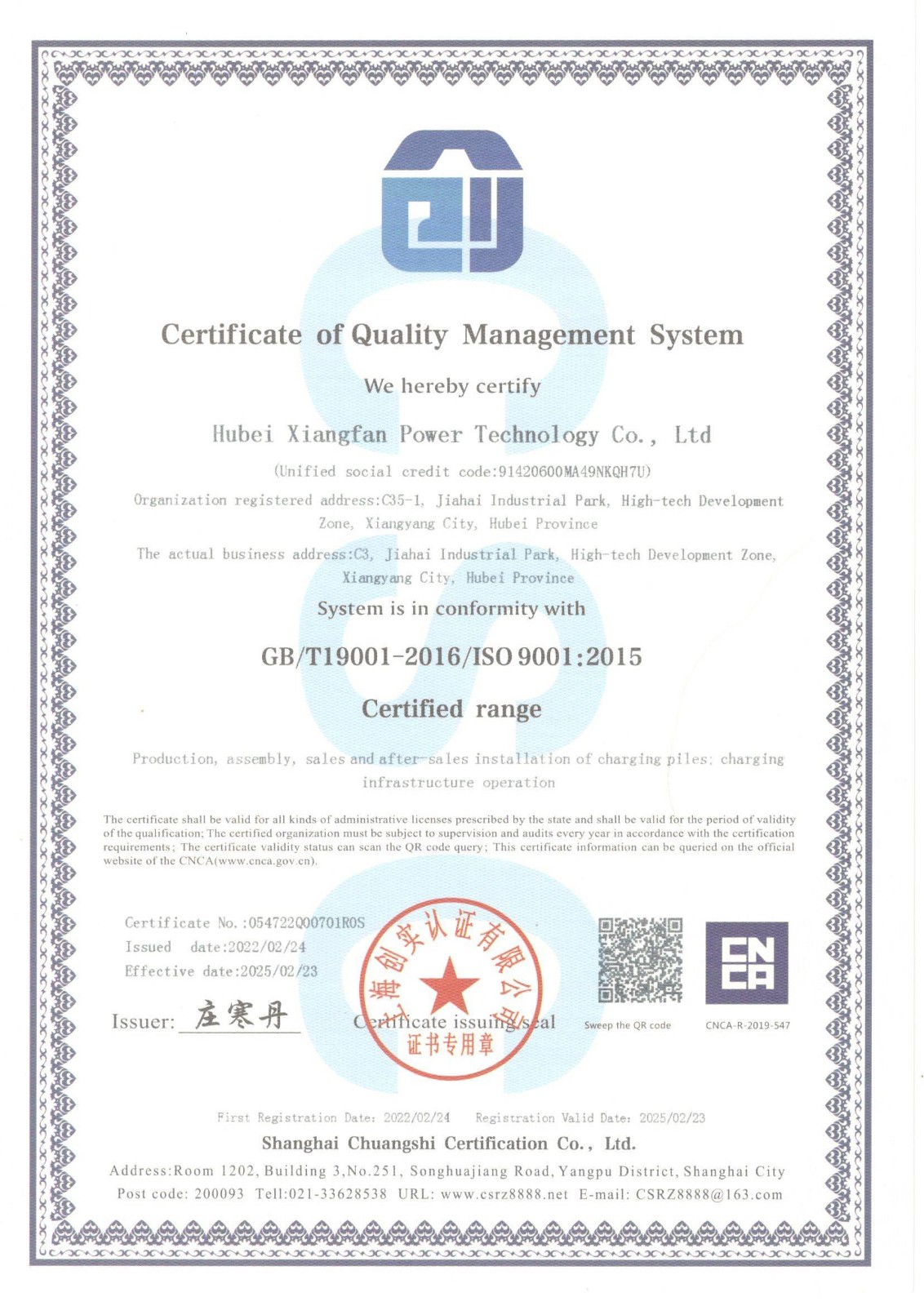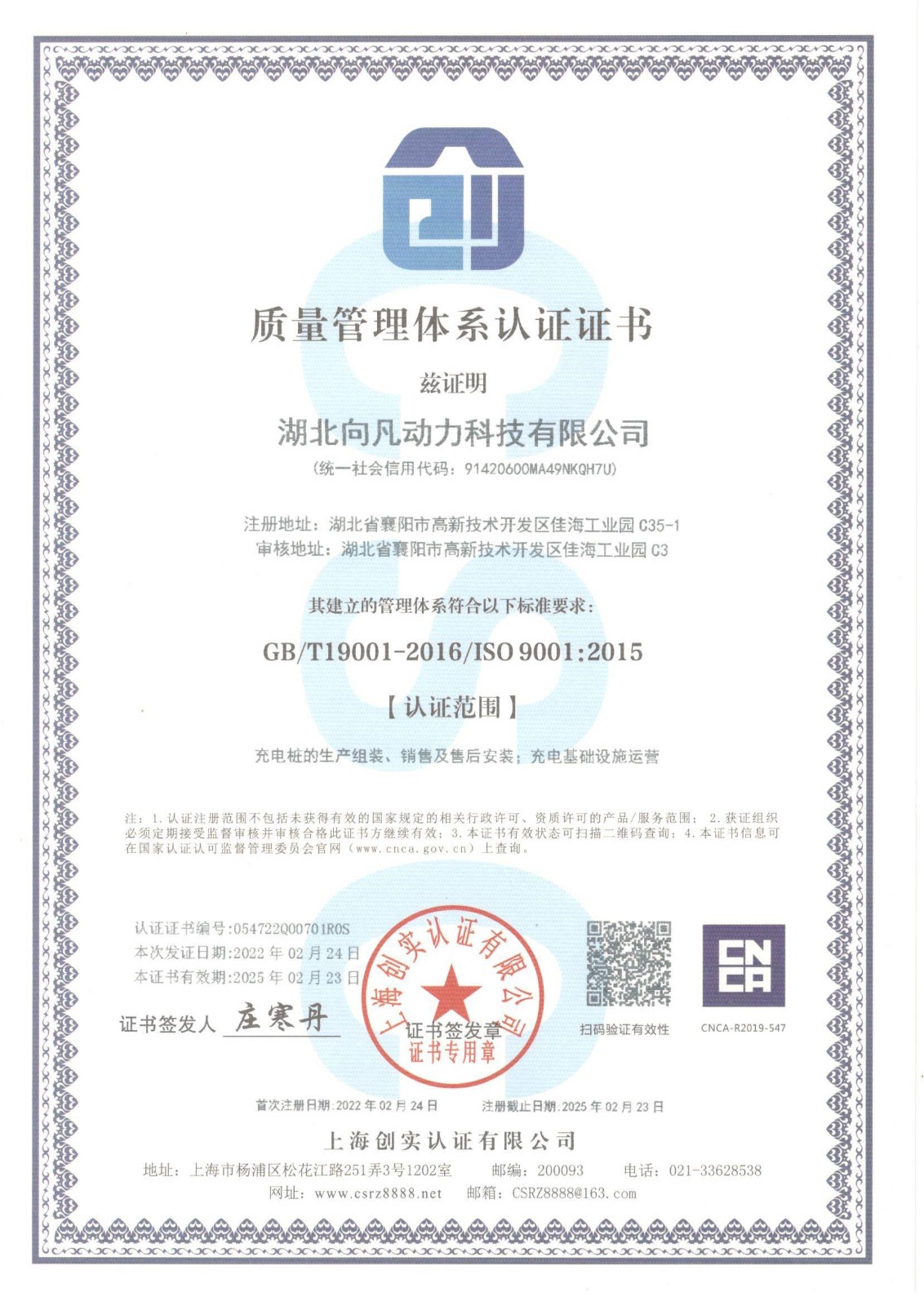 • 质量管理体系认证证书