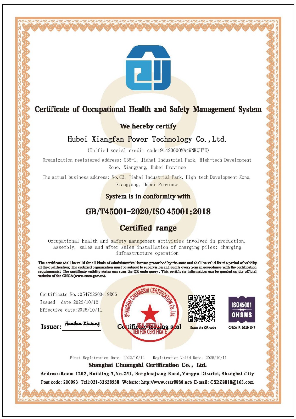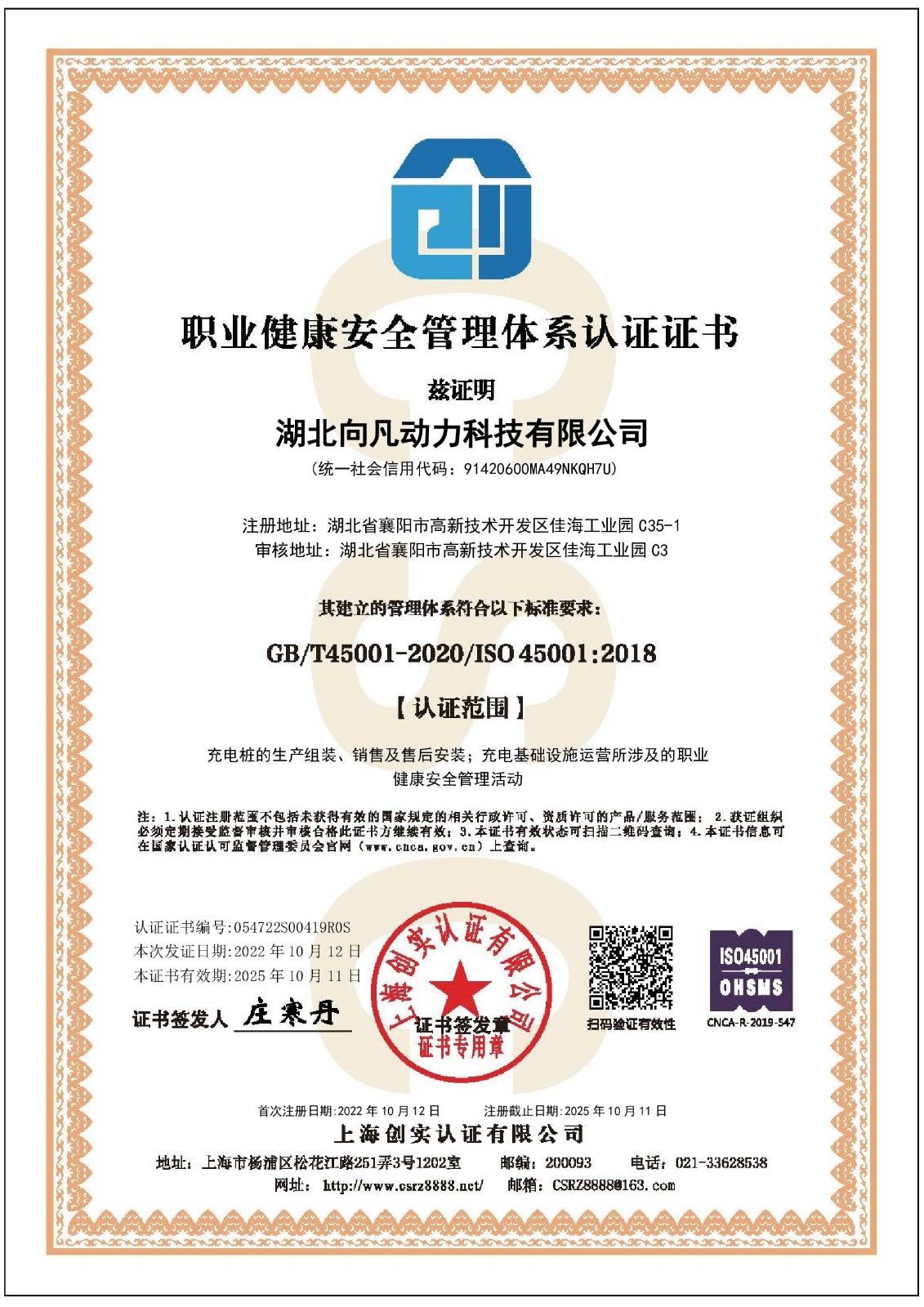 • 职业健康认证证书