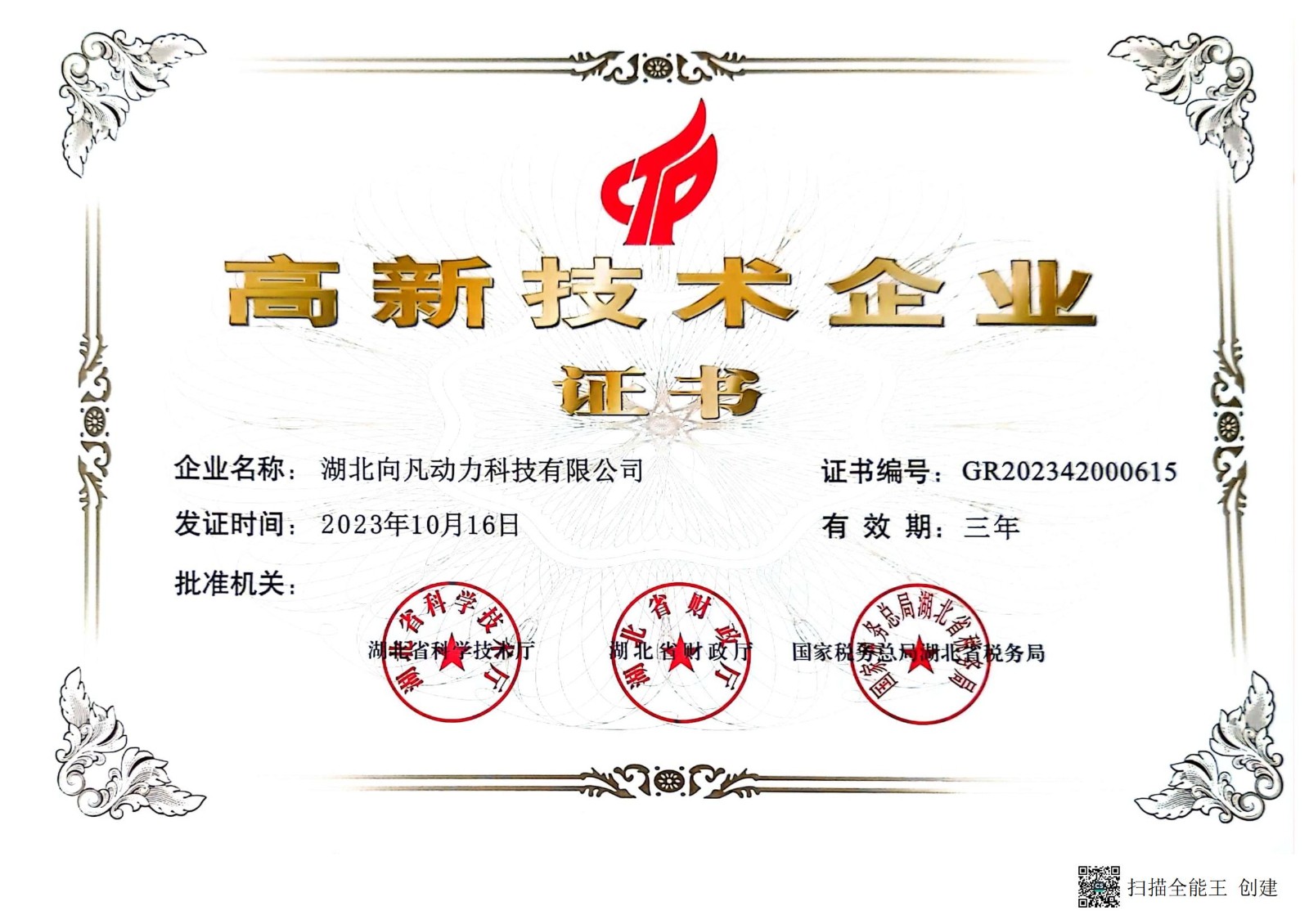 • 高新技术企业证书